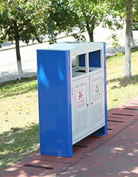 此款韶關機關鋼制垃圾桶雙桶分類設計,注重引導環保,契合機關政府的對環境保護的工作理念。桶體構架采用黑色噴塑顏料,再經酸洗磷化——靜電噴塑;確保桶體的戶外防銹能力和抗腐蝕性,長期使用也能歷久彌新。沉穩深沉。靜靜的矗立于各機關大樓之間,貼合了政府機關形象。正面黃綠雙色分類投放口,醒目之余也沖淡一點方正肅穆的味道,略帶綠意,遠觀近看都顯得無比悠揚和諧。頂蓋圓弧設計,避免積水,邊緣圓弧處理避免撞傷,同時起到美觀作用。欣方圳公司緊跟時代步伐,堅持以人為本,與時俱進。始終致力于"人無我有,人有我優“的生產宗旨。這就是為什么各大機關單位都會選購欣方圳韶關機關鋼制垃圾桶的原因。