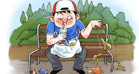 女子在垃圾桶尋食從側面反映浪費糧食問題