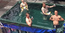 這個垃圾箱泳池一開始是出現(xiàn)在北費希達街(Cedar Street)社區(qū)的一個街道派對上的。CBS新聞網采訪了其中一個幫忙搭建垃圾箱泳池的人,他說:“我們將垃...