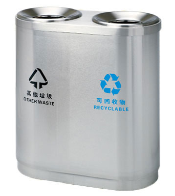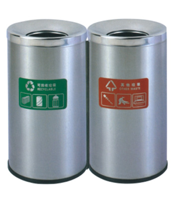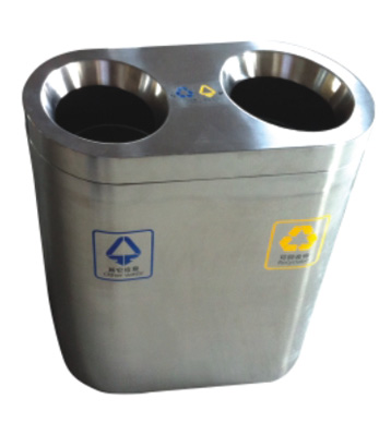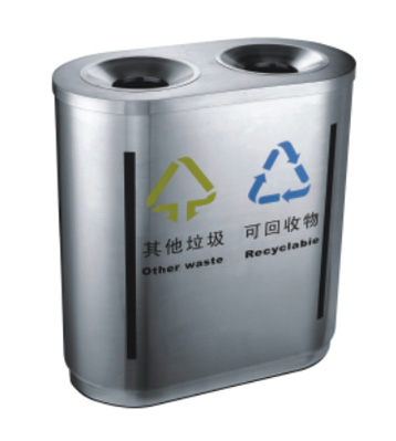 深圳新標準城中村街道社區不銹鋼五分類垃圾桶由有害垃圾、玻璃、金塑紙(為金屬、塑料、紙張的簡稱)、廚余垃圾、其他垃圾這5分類不銹鋼垃圾桶組合而成。其中金塑紙、其他垃圾日常產生量較大,所以分類收集容器也