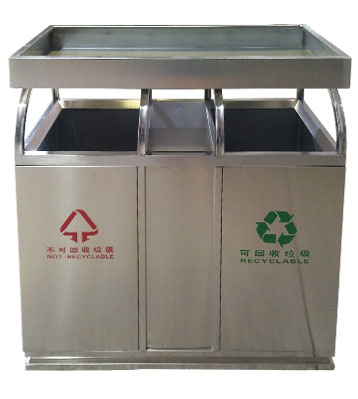 小區垃圾分類站點四類垃圾分類垃圾桶,不銹鋼無疑是較為理想的材質。它戶外防銹蝕效果好,表面金屬光澤高檔美觀,污漬也易清理。不銹鋼分類桶產品款式造型易定制,不受尺寸大小限制,滿足個性化需求,擺放于惠