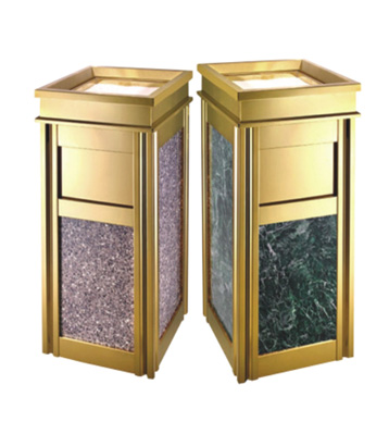 欣方圳為深圳嶺南天潤物業(yè)公司提供了一批室內(nèi)垃圾桶,材質(zhì)有鈦金類和鐵板噴塑類,外觀精美,使用價值高。 D272皇家座地煙灰桶規(guī)格:300*300*685,D295垃圾桶的規(guī)格為310*310*740,采用不銹鋼經(jīng)鍍鈦處理,專業(yè)除