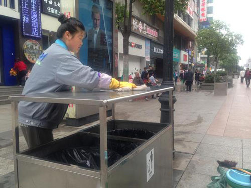 江漢路步行街地區(qū)管理辦公室相關(guān)負(fù)責(zé)人介紹,去年底,中山大道改造工程封路施工,江漢路每天往來(lái)人流量較以往增長(zhǎng)兩到三倍。與此同時(shí),封路后日均垃圾量激增至6噸,較以往增長(zhǎng)3倍。該負(fù)責(zé)人解釋,由于上一批果皮箱容量太小,無(wú)法滿足需求,因此從去年開(kāi)始,就在逐步設(shè)計(jì)新果皮箱的樣式大小。
