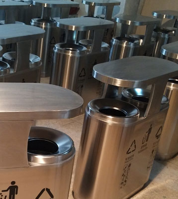 欣方圳不銹鋼地鐵商場分類垃圾桶批量生產圖