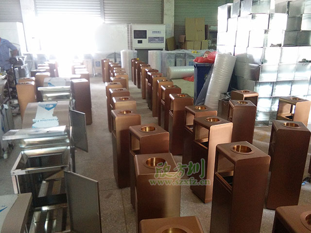 欣方圳專業生產不銹鋼垃圾桶,車間有數控折彎機、數控沖床、滾圓機、數控車床、激光切割機、送樣機、鏜床、二保焊機等行業先進設備。