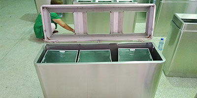 • 使用范圍:欣方圳三分類不銹鋼垃圾桶表面光滑、亮麗,是電梯口、寫字樓、學校、物業、賓館、酒店、機場、汽車站等擺放的首選。