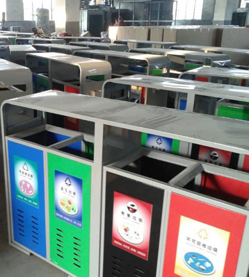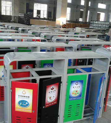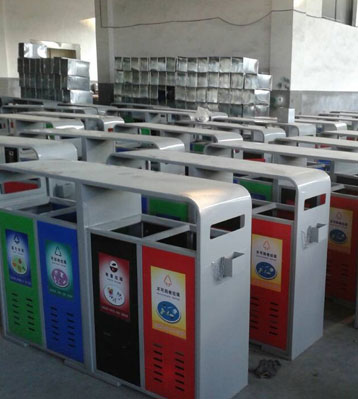 欣方圳戶外鋼制四分類垃圾桶批量生產(chǎn)圖