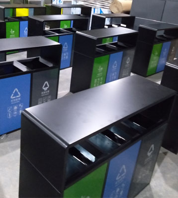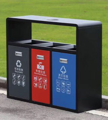 街道戶外三分類垃圾回收箱采用足厚優質冷板材質制作,做工扎實精良,表面打磨拋光無利口不傷手,產品符合生活垃圾分類要求。