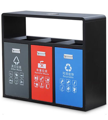 • 使用范圍:街道戶外三分類垃圾回收箱表面光滑、亮麗,是市政、企業、學校、小區、酒店、機場、汽車站等室內分類垃圾收集擺放的首選。