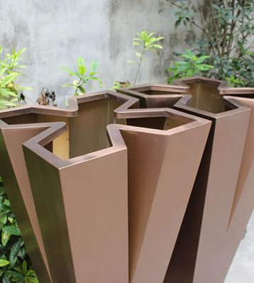 欣方圳不銹鋼高V字形電鍍花器工廠產品批量生產圖