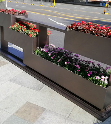 • 產品材質:不銹鋼道路花箱可采用5mm加厚201#/202#/304#不銹鋼材料模壓或焊接成型,金屬亮澤,內外表面光潔,易于清潔,表面可做電鍍壓紋、水鍍、蝕刻、納米鎳、無氰堿性光亮鍍銅工藝效果,無指紋處理高檔大氣;