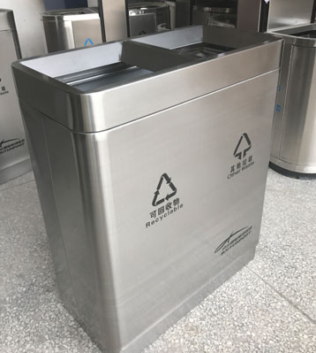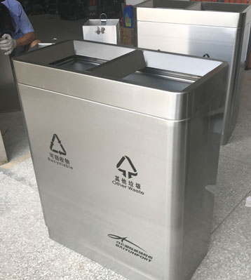 廣州白云機場直投式不銹鋼分類垃圾箱工廠生產圖