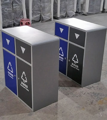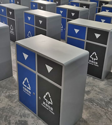 戶外推蓋垃圾桶金屬烤漆密閉分類垃圾箱批量生產圖