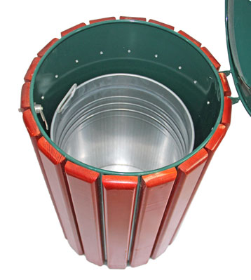 戶外圓形鋼木單桶垃圾桶內桶細節圖