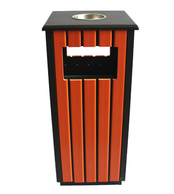 小區鋼木單桶垃圾桶桶頂煙灰缸嵌入式設計裝置,精致實用。