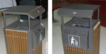 戶外鋼木垃圾桶桶身框架采用冷軋鋼板加工制作,表面經酸洗磷化噴塑處理。四面鋼木部分可選用防腐木、進口山樟木或塑木。