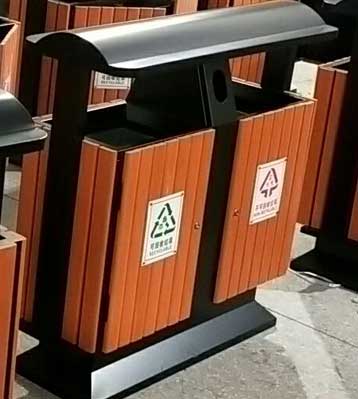 • 產品名稱:戶外馬路鋼木分類垃圾桶