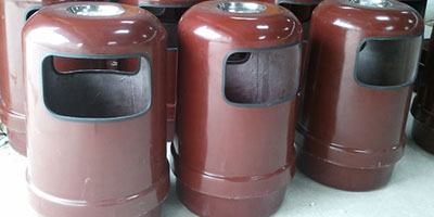 玻璃鋼垃圾桶桶身和內膽部分,采用高級玻璃鋼材質一次成型,經過打磨、除塵 、噴漆等一系列后期工藝然后出成品。