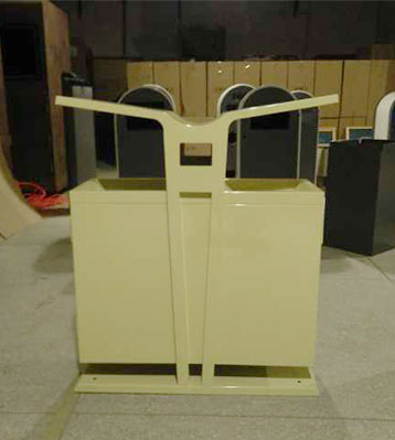 欣方圳專業生產鋼制展翅分類垃圾桶,車間有數控折彎機、數控沖床、滾圓機、數控車床、激光切割機、送樣機、鏜床、二保焊機等行業先進設備。